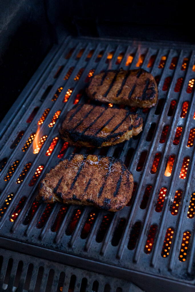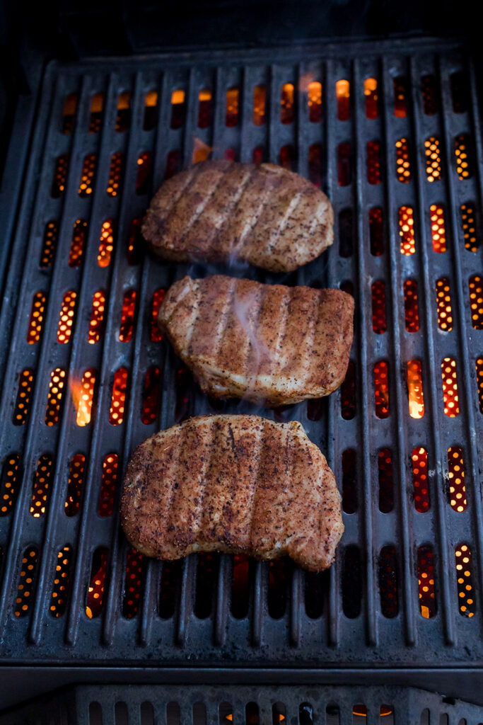 If you have a bit more time on your hands, these can also be smoked for an extra pop of flavor. Put the chops on a 225 degree smoker and let smoke until the internal temperature reaches 120 degrees. Then transfer to the grill and sear for 1-2 minutes per side until the internal temperature reaches 145 degrees. This method is especially tasty if you can find large 2 inch thick bone-in pork chops!